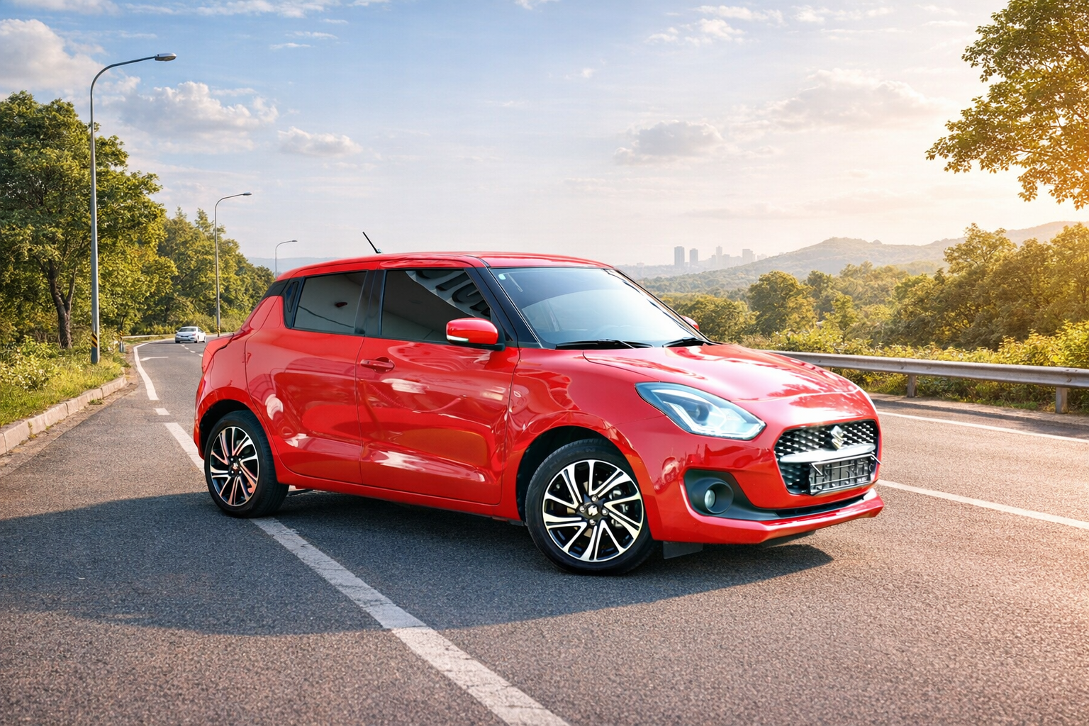 The 2024 Suzuki Swift is a fun, compact hatchback that blends sporty styling with practicality and excellent fuel efficiency. Powered by a responsive 1.2 L petrol engine paired with a smooth automatic or manual transmission, it delivers peppy performance ideal for city driving. Inside, the Swift offers a modern dashboard with intuitive tech like a touchscreen infotainment system with smartphone connectivity, comfortable seating for five, and clever storage solutions. With its nimble handling, stylish design, and strong safety features, the Suzuki Swift 2024 is a popular choice for everyday commuting and urban lifestyles.
